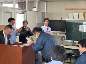 新年あけましておめでとうございます。1月5日仕事始めの日に例年通り全体集会を行いました。冒頭佐藤社長より新年の挨拶がありまして、昨年一年間の社員に対する労い、今年の展望等についていただきました。また永年勤続賞の表彰も行い8名の方が表彰されました。おめでとうございます。