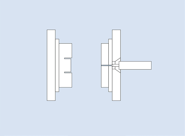 インジェクション成形法は、射出装置の基本構造によっておおかまに、プランジャー式、プリプラ式、インラインスクリュー式に分類されます。岳南有機(株)では、今日最も一般的に利用されているインラインスクリュー式射出装置を保有しています。